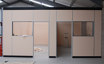 An ideal solution where a high quality, economical partitioning system is required for internal offices. With a wide choice of window and door modules. partitioning systems are constructed from steel stud framework with plasterboard covering. |